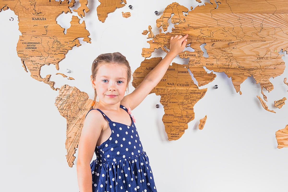 Карты идеально подойдут под любой интерьер, на выбор имеется 13 видов карт. А так как все карты делаются вручную, то есть возможность реализовать практически любой дизайн и задумку: можно выбрать необходимый цвет, древесину, масштаб, надписи на разных языках.