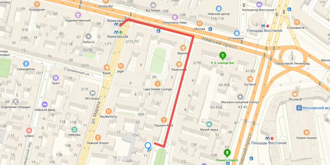 Вы можете самостоятельно забрать заказ из шоурума по адресу: Санкт-Петербург, улица Пушкинская, д 11. Шоурум работает с понедельника по пятницу с 9:30 до 20:00, в субботу и воскресенье с 11:00 до 18:00.