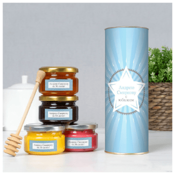 Вкусный и полезный сладкий набор. Внутри: ассорти медов и варенья. Все компоненты: ягоды, травы, мед – исключительно натуральные. Уютные и приятные чаепития гарантирвоаны!