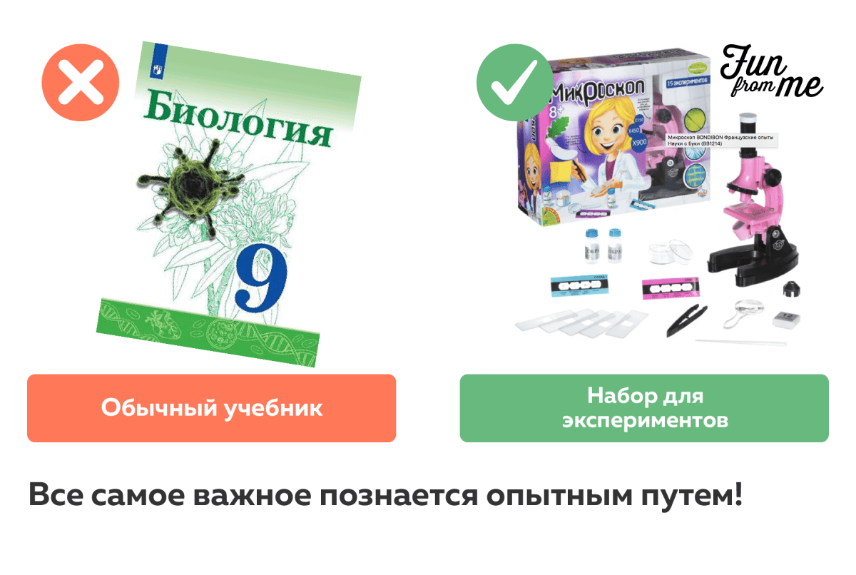 - наборы для опытов, микроскоп, телескоп, бинокль,