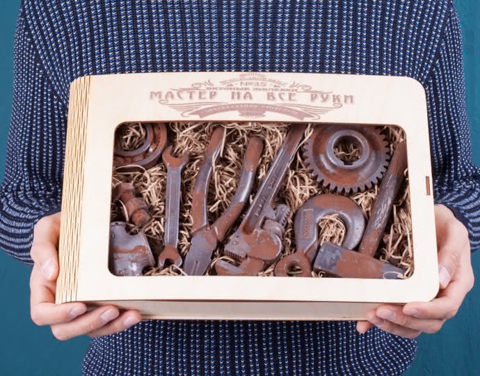 Как театр начинается с вешалки, так и подарок начинается с упаковки. Долой целлофан и декоративные ленты, не будем смущать мужчин. Их шоколадные наборы упакованы в элегантную упаковку из натурального дерева, объем создает фактурная крафтовая бумага (к тому же она защитит подарок при транспортировке), а вакуумная пленка позволит сохранить вкусовые качества и достойный вид шоколадного изделия до 12 месяцев.
