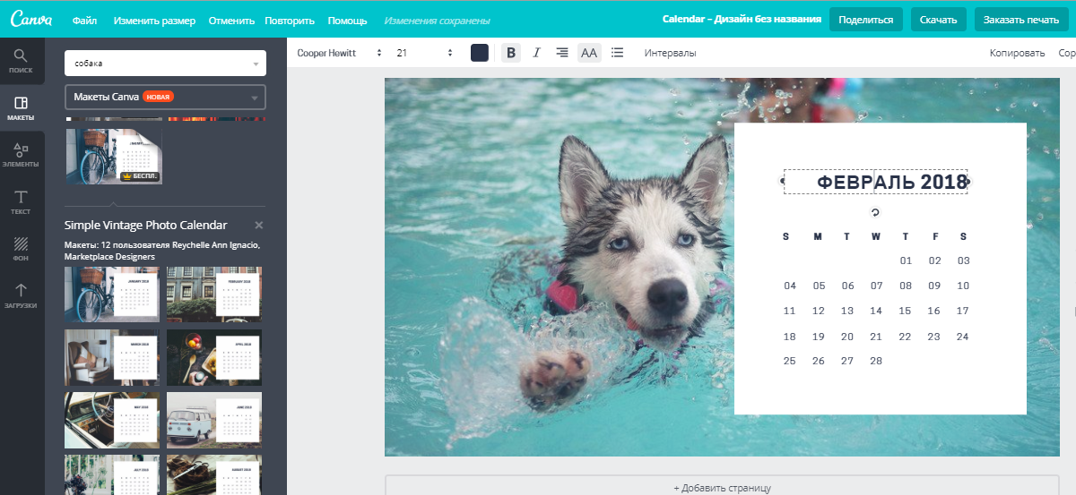 - Когда календарь полностью готов, его можно скачать в различных форматах, а также распечатать с высоким разрешением.