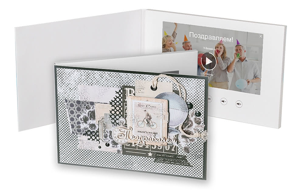 Видеооткрытка — это оригинальный памятный сувенир, только внешне похожий на простую открытку. У нее внутри встроен цветной видеоэкран, который показывает ваше видео, когда вы ее открываете.
